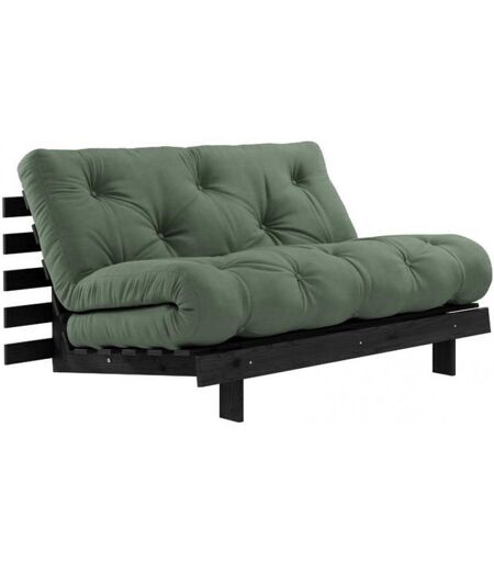 KARUP DESIGN Canapé convertible futon ROOTS pin laqué noir matelas 140 x 200 cm coloris vert olive