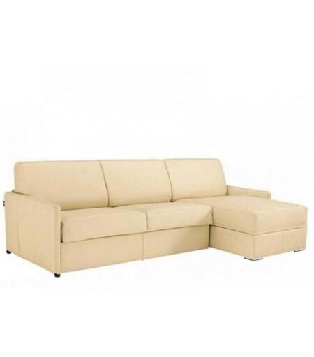 ITALIAN SPIRIT Canapé d'angle fixe réversible SUN 252 cm méridienne coffre accoudoirs fins cuir regent beige