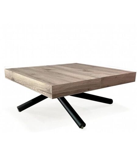 QUALITE ET STYLE UNIQUE Découvrez QUADRO, la table basse relevable et extensible qui allie élégance et praticité! Conçue avec des matériaux de haute qualité, elle arbore un style unique avec son piétement en métal graphite et son plateau en mélaminé chêne noueux, apportant chaleur et modernité à votre intérieur. Grâce à son système par glissière et sa rallonge intégrée, QUADRO s'adapte facilement à toutes vos envies, pouvant accueillir jusqu'à 6 couverts. Un choix parfait pour un espace à la fois design et fonctionnel. Offrez à votre salon une pièce qui impressionne et facilite votre quotidien! CARACTÉRISTIQUES TECHNIQUES : - Plateau : Mélaminé chêne noueux. - Piétement en métal couleur graphite. - Hauteur ajustable de 41 cm à 75,5 cm. DIMENSIONS + ALLONGES : - Table fermée: L 95 x P 90 x H 41 cm. - Table ouverte: L 190 x P 90 x H 75,5 cm. LES + PRODUITS : - Fabriquée avec des matériaux de haute qualité, cette table garantit robustesse et durabilité, tout en étant facile à entretenir. ...