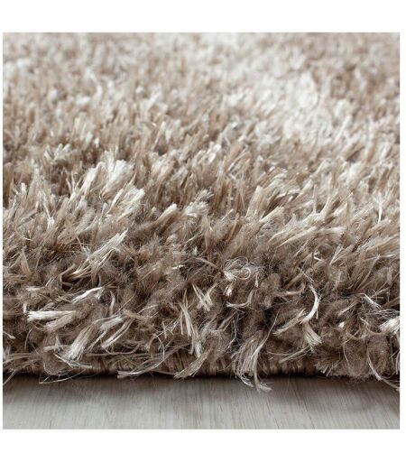 Allotapis - Tapis rond à poils longs doux uni Sera Taupe ø 120