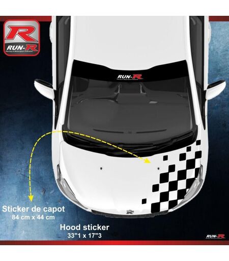 Run-R Stickers Sticker Capot Pour Peugeot 208 Damier- Noir