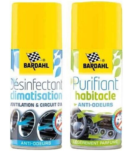 Entretenez votre Climatisation et votre habitacle avec ce Nettoyant climatisation et Traitement habitacle - Bardahl - AVEC FLEXIBLE 250ml. Ce kit est composé de deux produits : - Nettoyant climatisation et chauffage circuit technique Nettoie l'ensemble des composants du circuit. Elimine poussières, bactéries, champignons et autres organismes. Supprime les mauvaises odeurs. Protège l'évaporateur et le radiateur de chauffage de la corrosion. Purifie et assainit le circuit d'air - Traitement Habitacle Bardhal Purifie l'atmosphère de l'habitacle. Supprime les odeurs. Détruit les odeurs due à la prolifération bactérienne. Elimine durablement acariens et bactéries. Parfume légèrement votre habitacle. => Tuyau flexible prolongateur et Spray diffuseur automatique en option ...