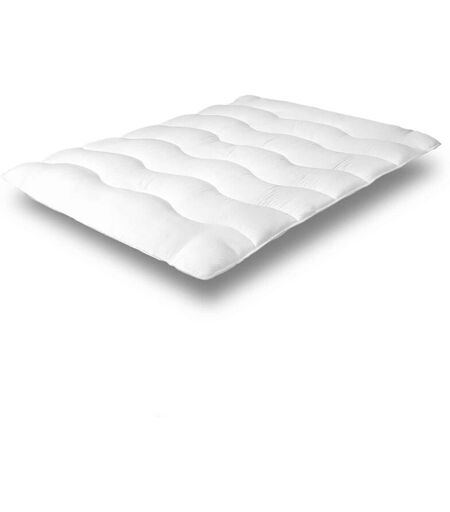 DESCRIPTION GÉNÉRALE Ce surmatelas apporte longévité et confort à votre matelas, garantissant une nuit parfaite. Conçu avec les dernières techniques de fabrication, il offre un confort enveloppant et une sensation de sommeil en apesanteur. La technologie microfibre permet au surmatelas de s'adapter à toutes les morphologies. SPÉCIFICATIONS TECHNIQUES Surmatelas de qualité supérieure pour une plus grande longévité de votre literie Épaisseur : +/- 4 cm Indépendance de couchage excellente Surpiqûre double-noeud pour un maximum de gonflant et une meilleure circulation d'air Composition : Microfibre (600 gr/m²) Adaptable à tout type de matelas, maintenu par 4 sangles élastiques Soutien : Souple Accueil : Enveloppant (très moelleux) Traitements : anti-acariens, anti-bactériens, anti-moisissures Poids : de 2 kg à 3 kg Garantie : 3 ans ...