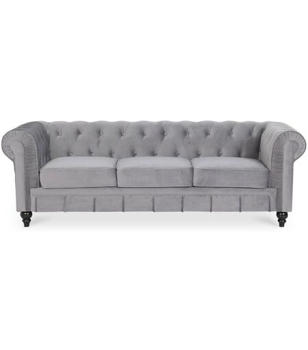 INTENSEDECO Canapé Chesterfield Velours 3 Places Altesse Argent