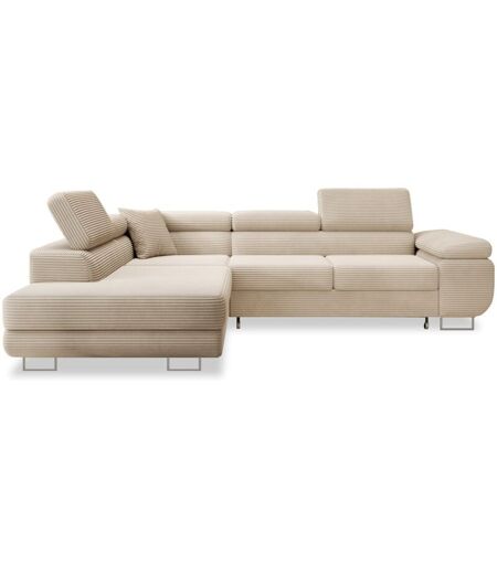Intensedeco - Canapé d'angle gauche convertible Marius velours côtelé Beige