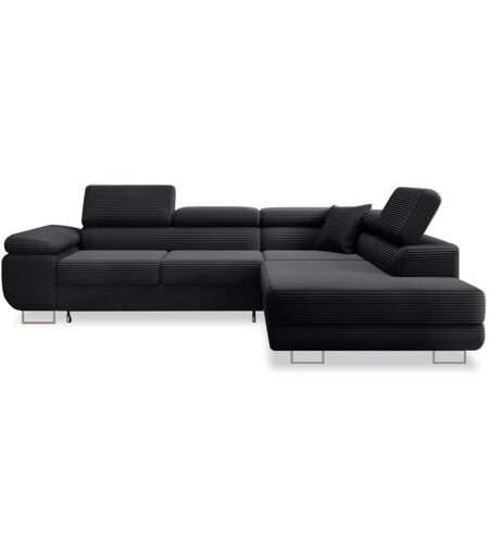 Intensedeco - Canapé d'angle droit convertible Marius velours côtelé Noir