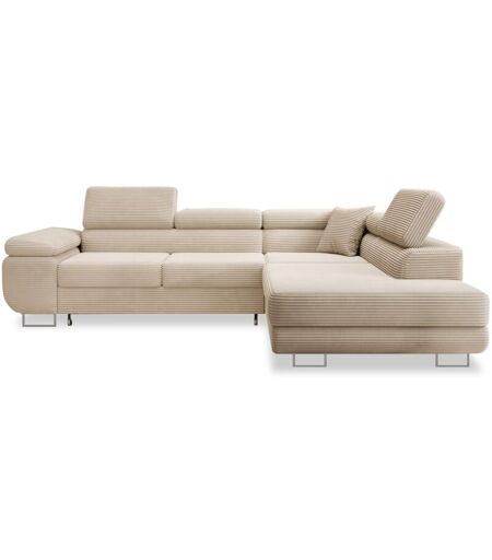 Intensedeco - Canapé d'angle droit convertible Marius velours côtelé Beige