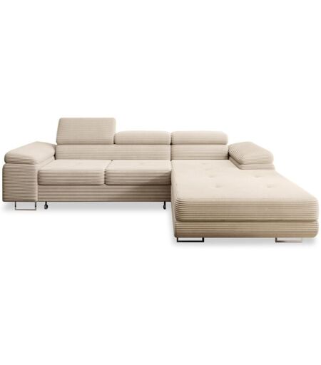 INTENSEDECO Canapé d'angle droit convertible Alphonso velours côtelé Beige
