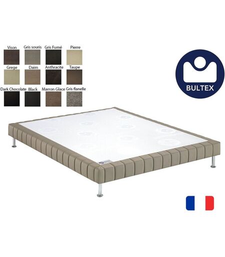 - Sommier déco Bultex confort médium morphologique 3 zones :- Suspension :2x14 lattes en 140x190cm.- Zone bassin renforcée- Type de lattes : lattes multiplis insérées dans des embouts - Structure en bois massif- Barre centrale de renfort (à partir de largeur 110cm).- Tissu plateau micro-ventilé et anti-dérapant- Tissu finition déco- Peut être inséré dans un lit ou mis sur pieds- Fabrication française- Sommier vendu sans les pieds- Finition déco coloris possibles: Choisissez votre colorisTaupeMarron_GlaceDark_GreyDaimGris_FumeGris_SourisAnthracite ...