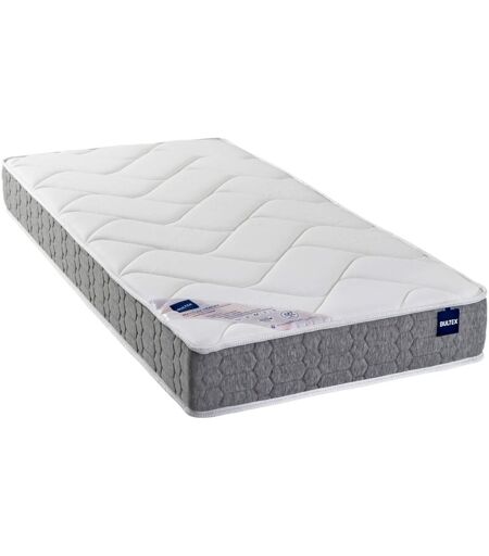 Le matelas Bultex Tracky en mousse Bultex nano dispose d’une épaisseur de 21 cm et d’un cœur en mousse nano Haute Résilience de 16 cm. Réversible, il comporte une face été et une face hiver (côté bandeau). Son coutil est stretch 100% polyester et comporte un traitement anti-acariens et antibactériens. - Marque : BULTEX - Modèle : TRACKY - Couleur : blanc / gris - Technologie : mousse Bultex nano (densité 33 kg/m³) - Fermeté : ferme - Accueil : confortable - Épaisseur totale : 21 cm - Épaisseur cœur : 16 cm - Confort : confortable - Faces été : mousse de confort - Face hiver (côté bandeau) : mousse de confort + fibres hypoallergéniques - Tissu : stretch 100% polyester - Traitements : antibactérien et anti-acariens - Normes : Oeko-Tex standard 100 - Fabrication française Cet article a bénéficié d'un traitement biocide à 2 propriétés : anti-acariens, antibactérien. Les substances actives contenues dans le traitement sont le Benzisothiazolinone + Octylisothiazolinone. Les produits ...