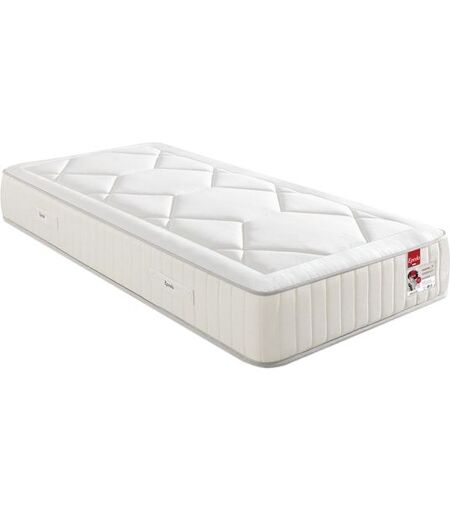 MATELAS Accueil équilibré / Soutien ferme Hauteur : 26cm 651 ressorts ensachés en 140 x 190 cm Mousse à mémoire de forme à cur Garnissage multi-matières Equilibré ZÉRO TRAITEMENT TECHNOLOGIE RESSORTS ENSACHÉS 651 ressorts ensachésen 140 x 190 cm(90% dacier recyclé, 10% non recyclé) Mousse à mémoire de forme 42 kg/m3?3,5 cm 2 FACES DE COUCHAGE MULTI-MATIÈRES FACE HIVER : Mélange de laines de France & Alpaga 100 g/m²Double couche de mousse«Soft» 18 kg/m3?8 mm Fibres hypoallergéniques 150 g/m²(80% recyclées, 20% non recyclées) FACE ÉTÉ : Mousse «Soft » 18 kg/m3?8 mm Fibres hypoallergéniques150 g/m²(80% recyclées, 20% non recyclées) FINITIONS Tissu face hiver : jacquard 100% viscose Tissu face été : stretch 100% polyester Tissu bande : jacquard 74% viscose, 26% polypropylène ...