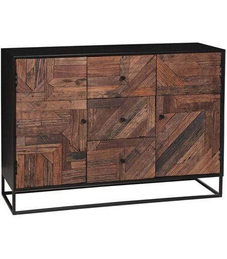 Altobuy - jordan - Buffet 2 Portes 3 Tiroirs en Métal Noir et Bois Recyclé