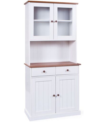 Altobuy - socoa - Buffet Vaisselier 4 Portes 2 Tiroirs Bois Massif Vernis Sepia et Blanc