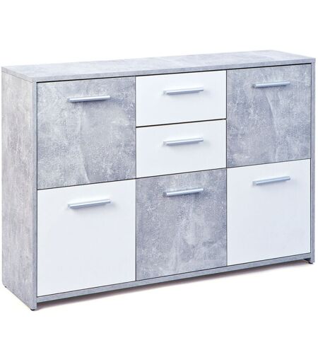 Altobuy - marry - Meuble 5 Portes 2 Tiroirs Imitation Béton et Blanc