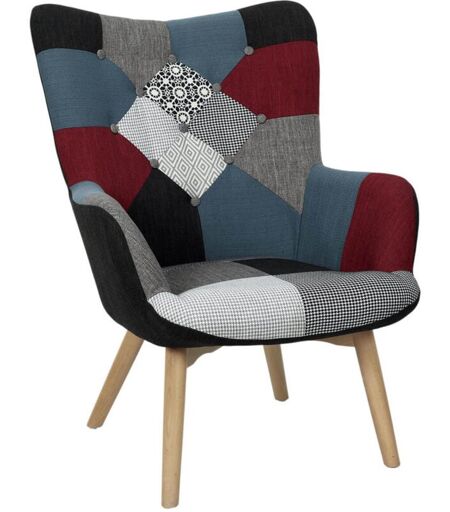 Fauteuil Patchwork Motifs Colorés Federica. Un modèle qui n'attend que vous vous blottissiez contre lui pour profiter d'un bon moment de détente. En plus de son piétement en bois, le fauteuil possède un revêtement en tissu motif patchwork du plus bel effet. Piétement en hêtre massif. Revêtement tissu 100% polyester, finition motif patchwork. Garnissage mousse. Hauteur d'assise : 45 cm. Hauteur accoudoirs du sol : 60 cm. Dimensions : 72 x 80 x H99 cm. Livré monté : Non ...