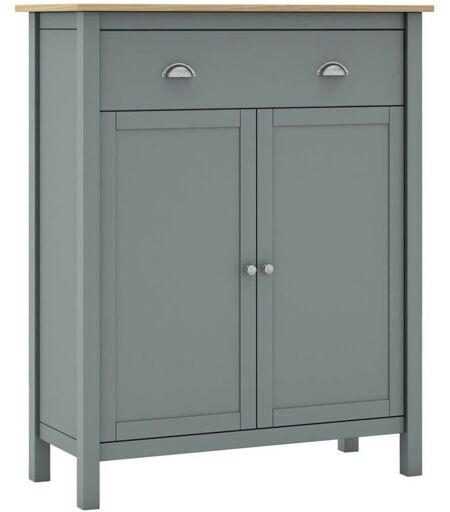 Altobuy - basco - Meuble d'Appoint 2 Portes 1 Tiroirs en Pin Massif Naturel et Vert Céladon