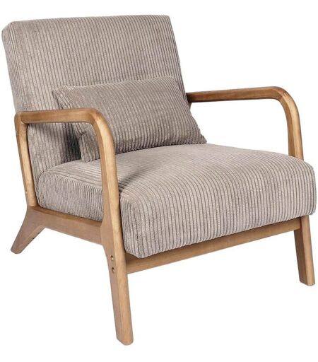 Altobuy - amory - Fauteuil en velours côtelé coloris taupe pieds et accoudoirs en hévéa