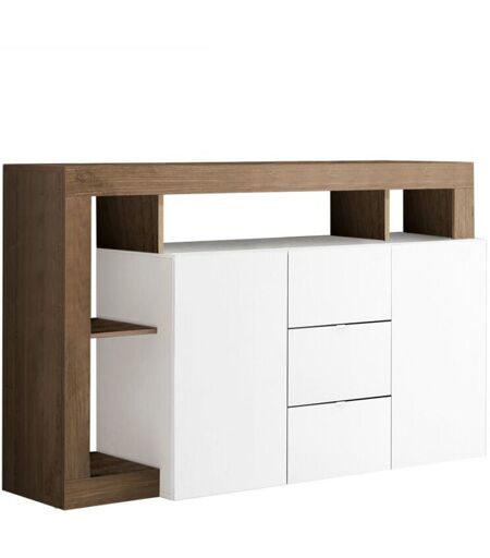 Altobuy - arturo - Buffet 2 Portes 3 Tiroirs Blanc Laqué Encadrement Niches Aspect Chêne Mercure