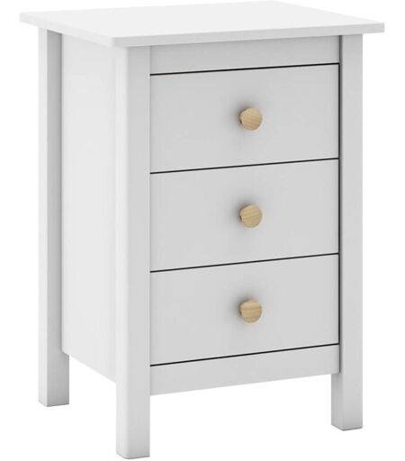 Altobuy - dava - Chevet 3 Tiroirs en Pin Massif Blanc