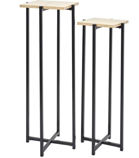 Altobuy - mox - Duo de Sellettes Gigognes Industrielles Aspect Bois et Métal Noir