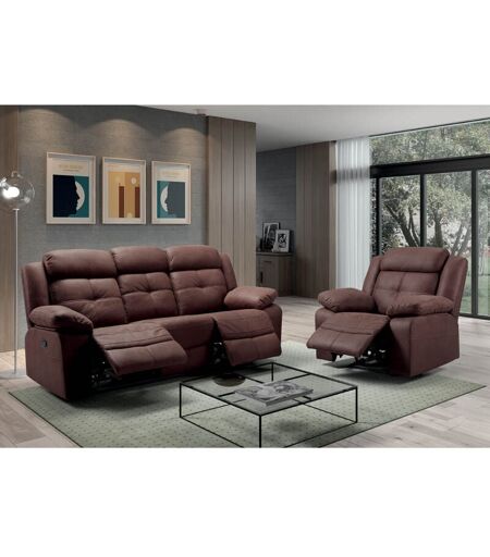 Altobuy - fabares - Canapé 3 Places + Fauteuil Relax Manuel Chocolat