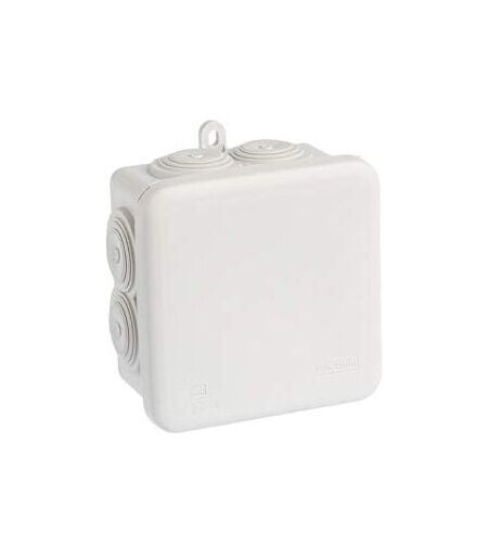 Description générale La boîte de dérivation étanche Eur'Ohm est conçue pour offrir une solution fiable et pratique pour vos installations électriques. Avec un indice de protection IP55, elle garantit une excellente étanchéité, protégeant ainsi les connexions électriques des liquides et des solides. Sa conception carrée (80 x 80 x 45 mm) et ses entrées directes facilitent le passage des câbles sans nécessiter de perçage, tout en maintenant l'intégrité de l'étanchéité. Spécifications techniques Dimensions : 80 x 80 x 45 mm Protection : IP55 Nombre d'entrées : 7 Isolation : Classe II Contenance effective : 271 cm³ Température de résistance : 960°C Matériau : Plastique Compatibilité et accessoires Compatible avec des gaines ICTA de diamètre D16, D20 et D25 Passe-fils nouvelle génération à entrée directe Fixation possible sans perçage grâce aux pattes de fixation extérieures Installation La boîte de dérivation peut être installée facilement grâce à ses pattes de fixation qui permettent de ...