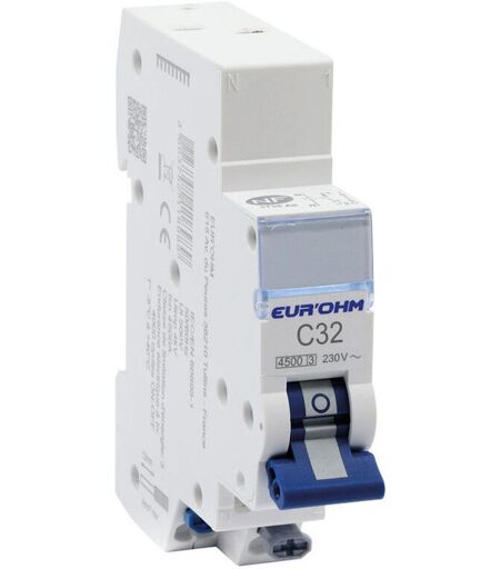 EUR'OHM Disjoncteur 1P+N 32A courbe c connexion rapide/vis 4,5kA nf (20322)