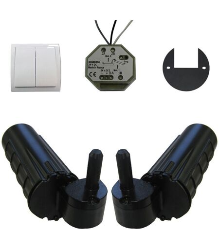 Motorisation invisible Ø 14 mm pour volet battant Commande filaire avec interrupteur Pour 2 vantaux gauche et droite Poids max du vantail : 50 kg Fabriqué en France Garantie : 2 ans Quantité : 2 Attention : Volet non compris dans le kit, ni l'alimentation 24V, ni le kit résine. Motorisation encastrée pour volets 2 battants URANUS filaire - gond Ø 14. Motorisez vos volets battants en toute discrétion, en préservant le cachet de votre façade, grâce au système innovant de gond motorisé encastré directement dans le mur. Les motorisations URANUS s'adaptent sur tous types de volets battants (bois, PVC, aluminium...), en neuf ou en rénovation. Associé à ce produit, nous recommandons l'utilisation de pentures d'épaisseur 5 mm minimum , en acier ou inox. Pour plus de détails, consultez la notice de pose. Spécifications à respecter : - Largeur du vantail : 30 cm min / 80 cm max - Surface max du vantail : 1,6 m² - Poids max du vantail : 50 kg - Distance min axe du gond / bord du volet : 30 mm ...