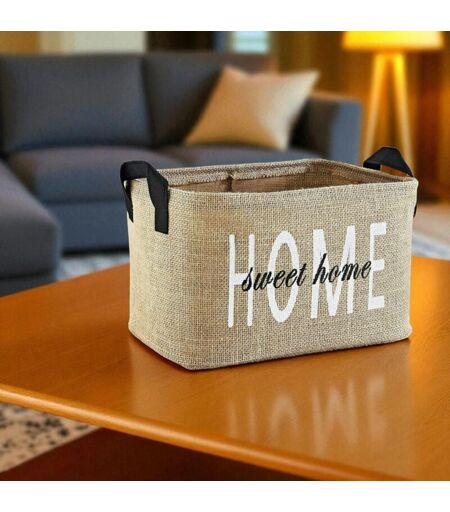 Panier de rangement en jute – Home sweet Home . Composition : Tissu 100% jute. Dimensions : Longueur : 30 cm. Largeur : 22 cm. Hauteur : 18 cm. Poids : 0 kg. Autres informations : . . ...