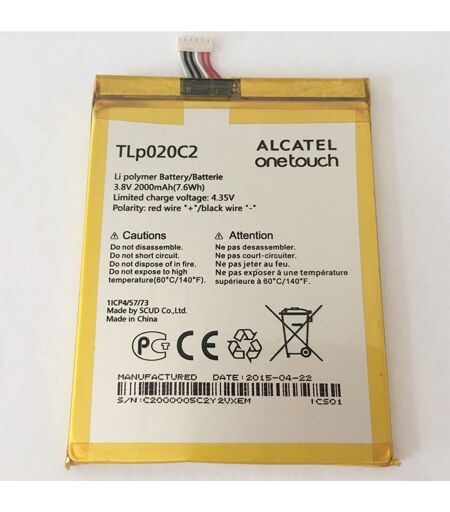 Batterie Origine Alcatel TLp020C2 pour Alcatel Idol-S (OT6034). Cette batterie d'origine Alcatel est spécialement conçue pour le modèle OneTouch IDOL-S (OT-6034) Au Lithium Polymer, cette batterie dispose d'une capacité de 2000 mAh. Cette batterie est idéale si votre batterie actuelle présente des signes de faiblesse. cette batterie est d'origine et respecte donc la qualité et la garantie de la Marque ! Attention, la mise en place nécessite le démontage du téléphone. Référence constructeur : TLp020C2 ...