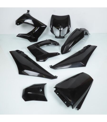 Kit carénage neuf coloris noir 8 pièces type origine de marque Tun'R comprenant: - Écope droite - Écope gauche - Plaque phare - Garde boue avant - Garde boue arrière - Cache latéral droit - Cache latéral gauche - Trappe à essence Livré conforme à la photo. ...