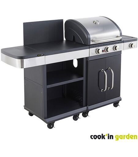 Cook'In Garden Pack Barbecue gaz FIDGI 3 Brûleurs, réchaud latéral et desserte avec Housse cuisine et Coffret 3 pièces aimantés unisex