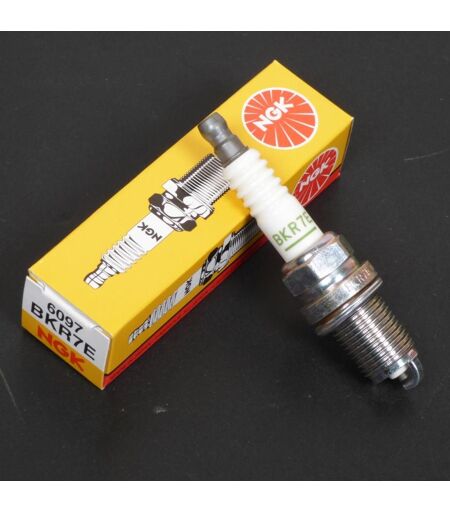 Bougie d'allumage NGK BKR7E neuve. Dimensions: Culot diamètre: 14mm Longueur filetée du culot: 19mm Le démontage peut être effectué à l'aide d'une clé de 16mm. Cette bougie est particulièrement adaptée aux moteurs quatre temps. Vendue à l'unité. Livrée conforme à la photo. ...