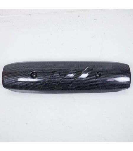 Protection de pot d'échappement neuve look effet carbone avec prise d'air. L'entre axe de point de fixation est de 200 mm. La protection mesure 415mm de long. Il est impératif de bien vérifier les dimensions car il existe plusieurs modèles. Livré conforme à la photo. ...