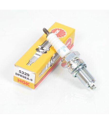 Bougie d'allumage NGK DPR9EA-9 neuve dimensions: Culot diamètre: 12mm. Longueur filetée du culot: 19mm. Le démontage peut être effectué à l'aide d'une clé de 18mm. L'électrode est préréglée à un écartement de 0,9mm. Cette bougie est équipée d'une électrode centrale en cuivre au design spécial SP améliorant le rendement moteur. Cette bougie est particulièrement adaptée aux moteurs quatre temps. Vendue à l'unité. Livrée conforme à la photo. ...