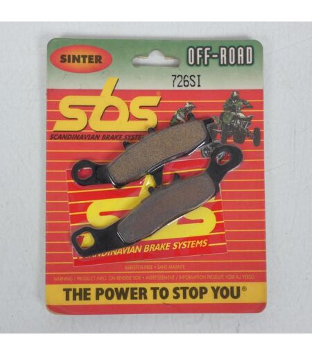 Une paire de plaquette de frein neuves de marque SBS référence "726SI" en métal frité. Que le terrain soit boueux ou sableux, qu?il fasse soleil ou qu?il pleuve, les garnitures SBS SINTER OFF-ROAD apporteront à votre moto de cross, / Tout-Terrain ou à votre quad la meilleure puissance de freinage possible. Fruits de la toute récente technologie de métal sinterisé (fritté) appliquée aux plaquettes de freins, les garnitures SBS SINTER OFF-ROAD se caractérisent par la stabilité de leur performance de freinage et leur faible taux d?usure tant sur piste qu?en Tout-Terrain. Les plaquettes SBS SINTER OFF-ROAD montées sur vos étriers, vous assurent des kilomètres et des kilomètres de freinage avant de devoir les changer. Ces plaquettes peuvent être montées à l'avant ou à l'arrière suivant le véhicule d'affectation. Dimensions: Plaquette 1 : - Longueur: 119.5mm. - Largeur: 26.4mm. - Épaisseur: 7.3mm. ...