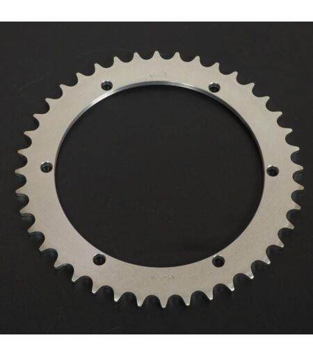 Couronne de transmission neuve de marque AFAM en acier de 40 dents au pas de 520 dimensions: - Diamètre intérieur: 152mm. - Nombre de trous 6. - Diamètre trous 8.5mm. - Entre axe des trous 164mm. Livrée conforme aux photos. ...