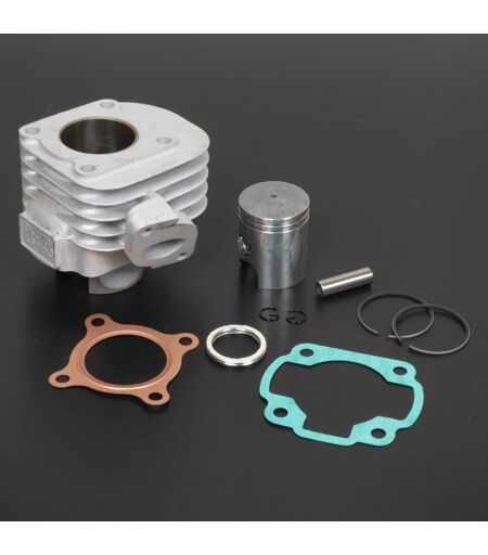 Kit cylindre piston neuf aluminium type origine de marque TNT avec pochette de joints haut moteur pour moteur MINARELLI Horizontal refroidissement air. Le kit comprend: cylindre, piston, segments, clips, axe de piston, joint d'embase, joint de culasse et joint de pot d'échappement. Livré conforme à la photo. ...