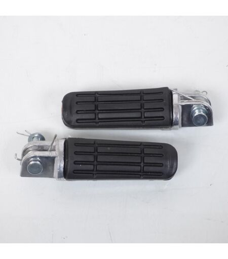 Paire de repose pied neuf type origine avec revêtement caoutchouc. Dimensions : - Largeur de la chape 19mm. - Longueur de la chape 28mm. - Longueur totale du repose pied 123mm. - Axe de repose pied Ø8x42mm. Livrée conforme à la photo. ...