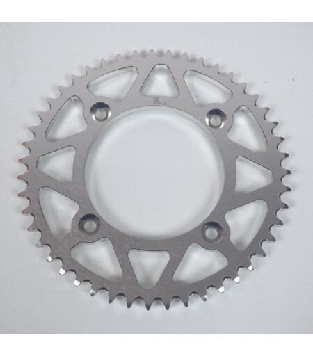 Couronne de transmission neuve en aluminium, 47 dents au pas 428, coloris aluminium. Dimensions : - Diamètre intérieur 100mm - Épaisseur 7mm - Nombre de trous 4 - Diamètre trous 8.5mm - Entre axe des trous 120mm. Livrée conforme à la photo. ...