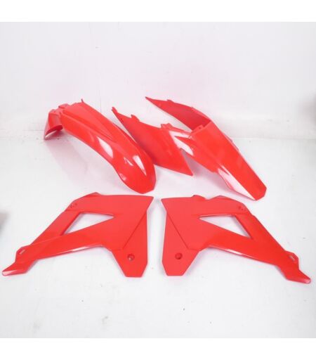 Kit plastique RACETECH neuf de coloris rouge brillant. Fabricant spécialisé dans les équipements plastiques pour motos tout-terrain. Ces habillages sont conçus entièrement à partir de plastique injecté et sont résistants aux UV. Comprend : -Garde-boue avant -Garde-boue arrière -Ouïes de radiateur Produit type origine vendu sans visserie de fixation et sans décoration. Livré conforme aux photos. ...