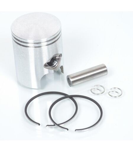 Kit piston neuf calotte plate diamètre 40mm pour scooter à moteur 2 temps type MINARELLI vertical. Convient pour les cylindres fonte ou aluminium. Le kit piston comprend le piston, deux segments, deux clips et l'axe de piston diamètre 10mm. Le piston mesure 50mm de haut. Il est important de bien vérifier que le diamètre de l'axe de piston est conforme à votre diamètre d'origine. Livré conforme à la photo. ...