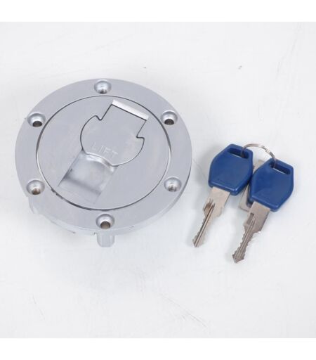 Bouchon de réservoir d'essence neuf de marque Vicma. Dimensions : - Diamètre extérieur : 100mm. - Diamètre extérieur de la trappe : 74mm. - Fixation par trois vis entre axe 77mm. - 1 vis antivol située à l'intérieur du bouchon vers la charnière. Vendu avec 2 clefs. Livré conforme aux photos. ...