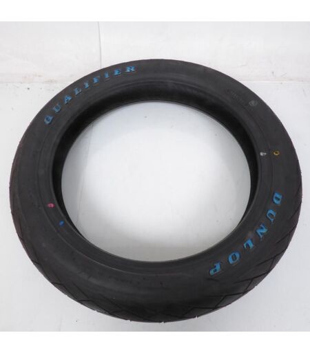 Pneumatique avant Dunlop Qualifier F20 indice de vitesse 61V dimension 110/90-18. Les inscriptions 'DUNLOP QUALIFIER' sur le flan du pneu sont inscrites en blanc et recouvertes d'un film bleu difficile à retirer. Vendu à l'unité. Livré conforme à la photo. ...