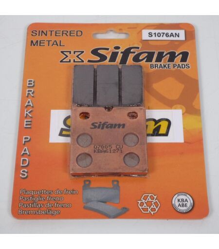 Plaquette de frein métal fritté sport neuve. Dimensions: - Longueur: 55.6mm - Largeur: 53.6mm - Épaisseur: 9mm 100% des plaquettes SIFAM sont de qualité "SINTERED METAL". Elles conviennent parfaitement aux motos puissantes. Performances de freinage stables et accrues pour les freins avant et arrière. Haut niveau de confort, longue durée de vie dans diverses conditions telles que les routes humides, les changements de températures. Elles disposent de la norme KBA/ABE. Cela signifie que les matériaux de friction répondent aux critères les plus stricts selon les normes Européenne. Vendue par paire. Livrée conforme à la photo. ...
