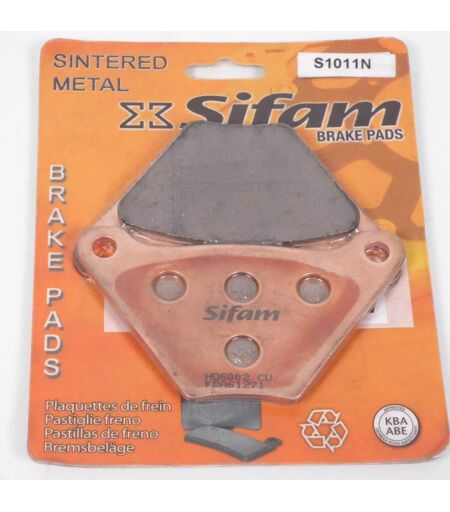 Plaquette de frein métal fritté sport neuve. Dimensions: - Longueur: 113.9mm - Largeur: 65.4mm - Épaisseur: 7.2mm 100% des plaquettes SIFAM sont de qualité "SINTERED METAL". Elles conviennent parfaitement aux motos puissantes. Performances de freinage stables et accrues pour les freins avant et arrière. Haut niveau de confort, longue durée de vie dans diverses conditions telles que les routes humides, les changements de températures. Elles disposent de la norme KBA/ABE. Cela signifie que les matériaux de friction répondent aux critères les plus stricts selon les normes Européenne. Vendue par paire. Livrée conforme à la photo. ...