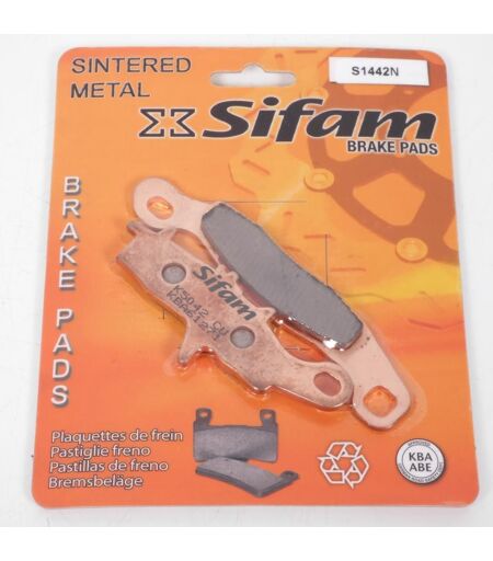 Plaquette de frein métal fritté sport neuve. Dimensions: - Longueur: 94.4mm - Largeur: 35.8mm - Épaisseur: 7.4mm - Longueur 2: 119.1mm - Largeur 2: 26mm - Épaisseur 2: 7.1mm 100% des plaquettes SIFAM sont de qualité "SINTERED METAL". Elles conviennent parfaitement aux motos puissantes. Performances de freinage stables et accrues pour les freins avant et arrière. Haut niveau de confort, longue durée de vie dans diverses conditions telles que les routes humides, les changements de températures. Elles disposent de la norme KBA/ABE. Cela signifie que les matériaux de friction répondent aux critères les plus stricts selon les normes Européenne. Vendue par paire. Livrée conforme à la photo. ...