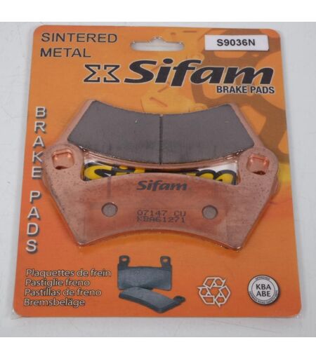 Plaquette de frein métal fritté sport neuve. 100% des plaquettes SIFAM sont de qualité "SINTERED METAL". Elles conviennent parfaitement aux motos puissantes. Performances de freinage stables et accrues pour les freins avant et arrière. Haut niveau de confort, longue durée de vie dans diverses conditions telles que les routes humides, les changements de températures. Elles disposent de la norme KBA/ABE. Cela signifie que les matériaux de friction répondent aux critères les plus stricts selon les normes Européenne. Vendue par paire. Livrée conforme à la photo. ...