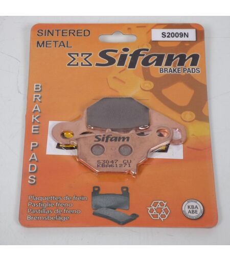 Plaquette de frein métal fritté sport neuve. Dimensions: - Longueur: 99.2mm - Largeur: 39.7mm - Épaisseur: 7.6mm - Longueur 2: 75.4mm - Largeur 2: 40.7mm - Épaisseur 2: 8.4mm 100% des plaquettes SIFAM sont de qualité "SINTERED METAL". Elles conviennent parfaitement aux motos puissantes. Performances de freinage stables et accrues pour les freins avant et arrière. Haut niveau de confort, longue durée de vie dans diverses conditions telles que les routes humides, les changements de températures. Elles disposent de la norme KBA/ABE. Cela signifie que les matériaux de friction répondent aux critères les plus stricts selon les normes Européenne. Vendue par paire. Livrée conforme à la photo. ...