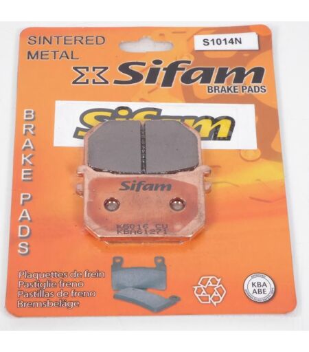 Plaquette de frein métal fritté sport neuve. Dimensions: - Longueur: 67.7mm - Largeur: 40.6mm - Épaisseur: 9.5mm 100% des plaquettes SIFAM sont de qualité "SINTERED METAL". Elles conviennent parfaitement aux motos puissantes. Performances de freinage stables et accrues pour les freins avant et arrière. Haut niveau de confort, longue durée de vie dans diverses conditions telles que les routes humides, les changements de températures. Elles disposent de la norme KBA/ABE. Cela signifie que les matériaux de friction répondent aux critères les plus stricts selon les normes Européenne. Vendue par paire. Livrée conforme à la photo. ...